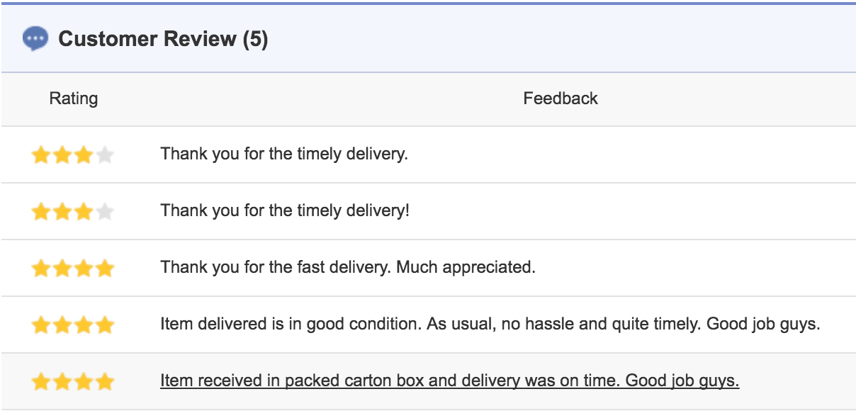 Excellent service! My plan was to deliver the order to my friend’s office as as a surprise gift. Luckily the delivery team informed me immediately when they found nobody working in office. I felt so sorry for the inconvenience caused. Thankfully the company responded promptly and arranged a 2nd attempt delivery to my friend’s place. My friend received the items in the following morning:)