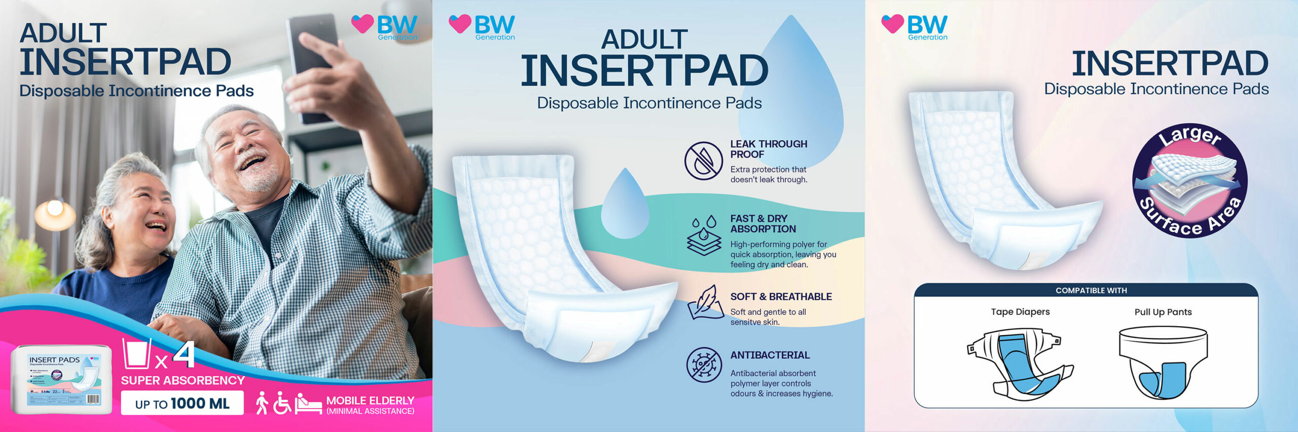 Our BW InsertPad helps protect you from bladder leaks that turns liquid into gel, up to 1000ml.