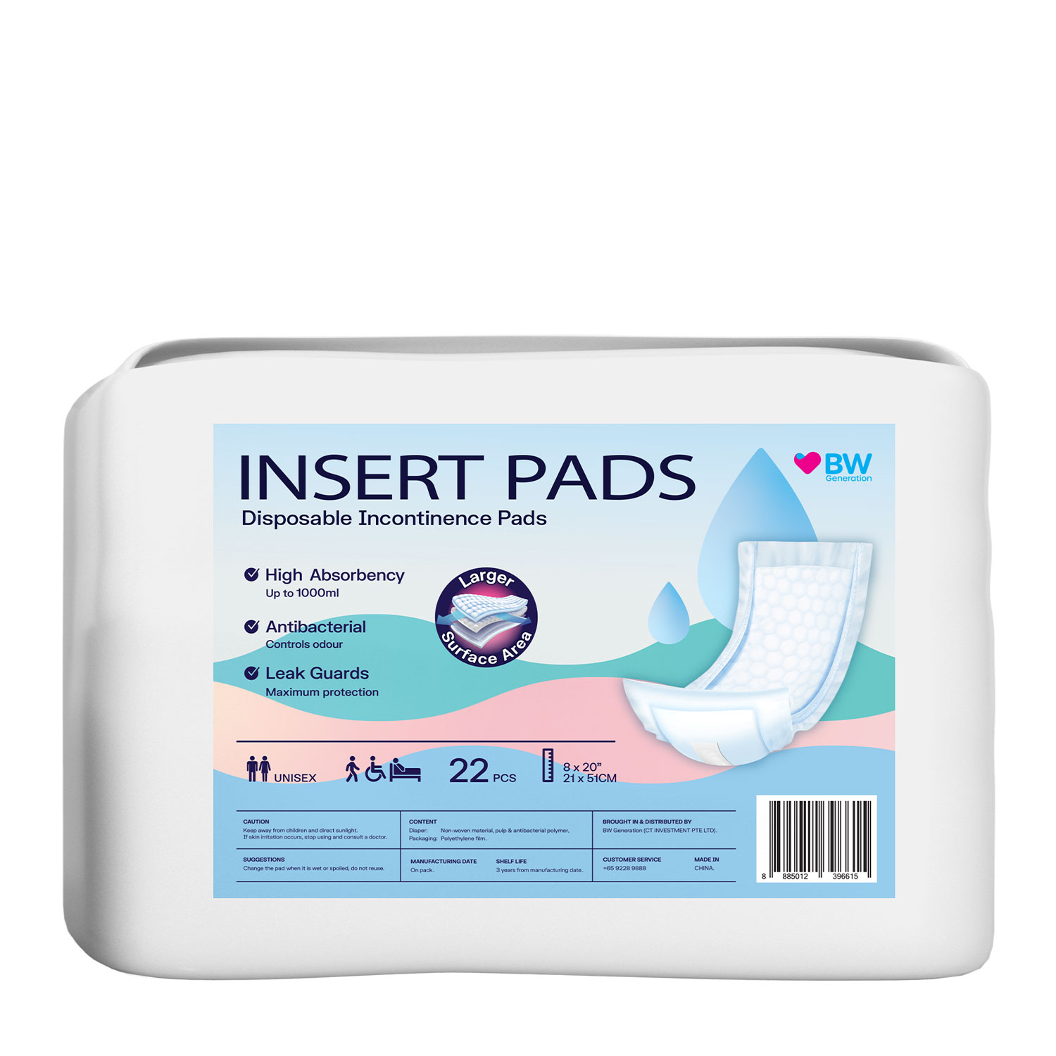 Our BW InsertPad helps protect you from bladder leaks that turns liquid into gel, up to 1000ml.