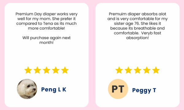 “I bought the diapers for my Grandmother who used BW Diapers until she was 105 years old. It is good price and high absorbency and no leakage. I like the re-sealable ‘stickers’ at the sides and the soft leg gathers. This is value for money product, I can’t get a premium adult diaper at this price anywhere else. On top of all these features they Home Deliver and I can order just by phone from anywhere even when I am on business trip and they deliver to the home of my grandmother, great service!”